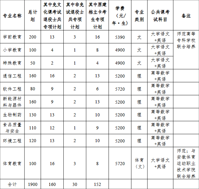 2.1.1 安徽省省属普通高校(以及经过批准举办普通高等职业教育的成人高等院校)2026 年应届全日制普通高职(专科)毕业生;在安徽省应征入伍的具有普通高职(专科)学历的退役士兵。所有考生须参加省考试院统一组织的报名,并取得考生号。身体条件符合《普通高等学校招生体检工作指导意见》的体检要求,同时毕业专业须符合我校相应专业招生范围的要求,毕业专业非以上专业(类)的考生不能报考我校相应专升本专业。