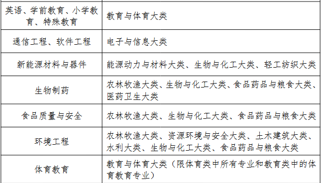 (2)申请调剂非免试退役士兵专项、建档立卡专项及其他非专项类缺额计划的考生须符合以下全部条件:a.毕业专业须符合我校招生专业范围要求;b.考生申请调剂的专业与原报考专业名称一致、类别一致、公共课和专业课考试科目一致,不接受跨专业、跨类别调剂;c.公共课达到省控线且未被任何学校录取。
