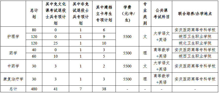 严格按照安徽省教育厅下达的招生计划和我校以下录取细则,结合考生志愿进行录取。