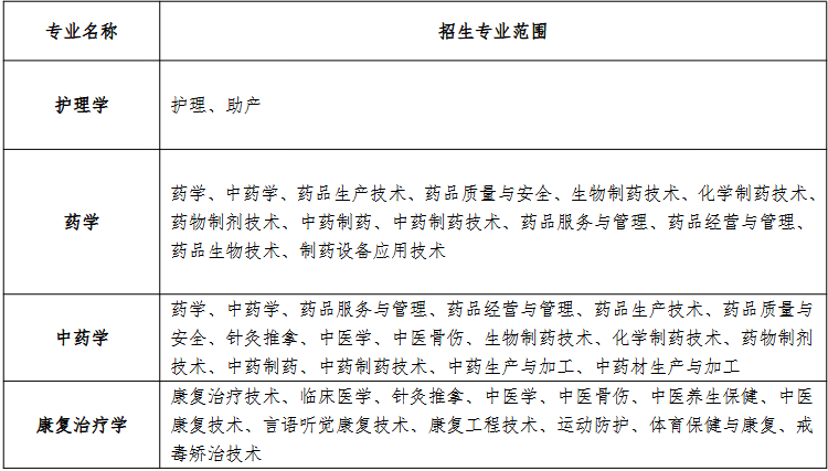 表 2 安徽医科大学 2026 年普通高校专升本招生专业范围