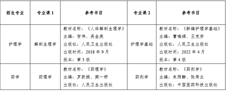 表 3 2026 年安徽医科大学普通高校专升本招生专业课考试科目及参考书目