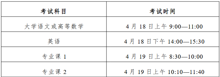 考试科目分为安徽省教育招生考试院组织的公共课和招生院校组织的专业课两部分,实行“2 门公共课(各 150分)+2 门专业课(各 150 分)”的方式。公共课考试由安徽省教育招生考试院负责组织进行统考。专业课考试由我校负责组织实施。