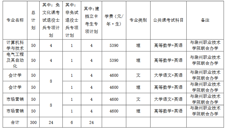与滁州职业技术学院联合培养招生专业,学生修完教学计划规定的全部课程且成绩合格,颁发安徽科技工程大学毕业证书,符合安徽科技工程大学学士学位授予条件者,授予安徽科技工程大学学士学位证书。普通高校专升本学生的学费按照《安徽省发展改革委 安徽省财政厅安徽省教育厅关于调整公办普通高校本科学费标准的通知》(皖发改价费〔2021〕348号)标准收费,学费标准与普通本科相应专业学费标准相同。住宿费标准按照教计〔2006〕15 号文件精神执行,1000 元/生·学年。收费标准如有变更,以安徽省财政厅、安徽省教育厅等部门核准的最新收费标准执行。