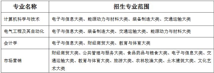 注:(1)所有专业学制均为 2 年,须全程脱产学习。
