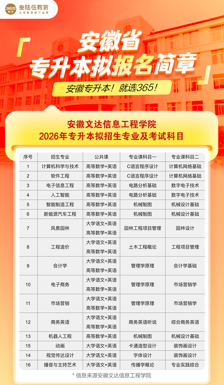 安徽文达信息工程学院2026年普通高校专升本招生方案(拟)