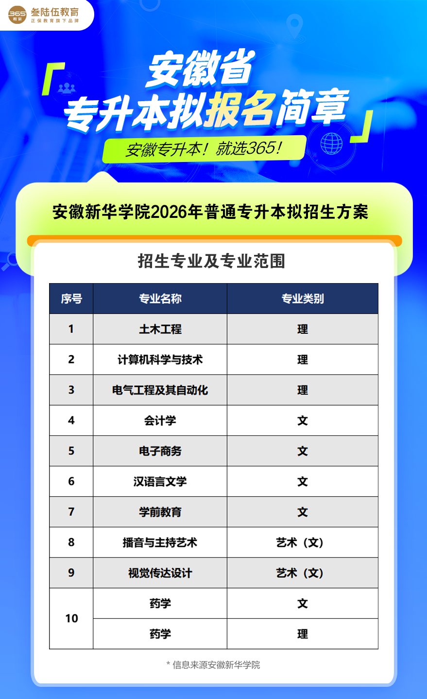 安徽新华学院2026年普通高校专升本招生方案(拟)