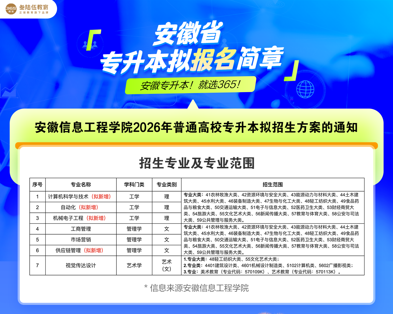 安徽信息工程学院2026年普通高校专升本招生方案(拟)
