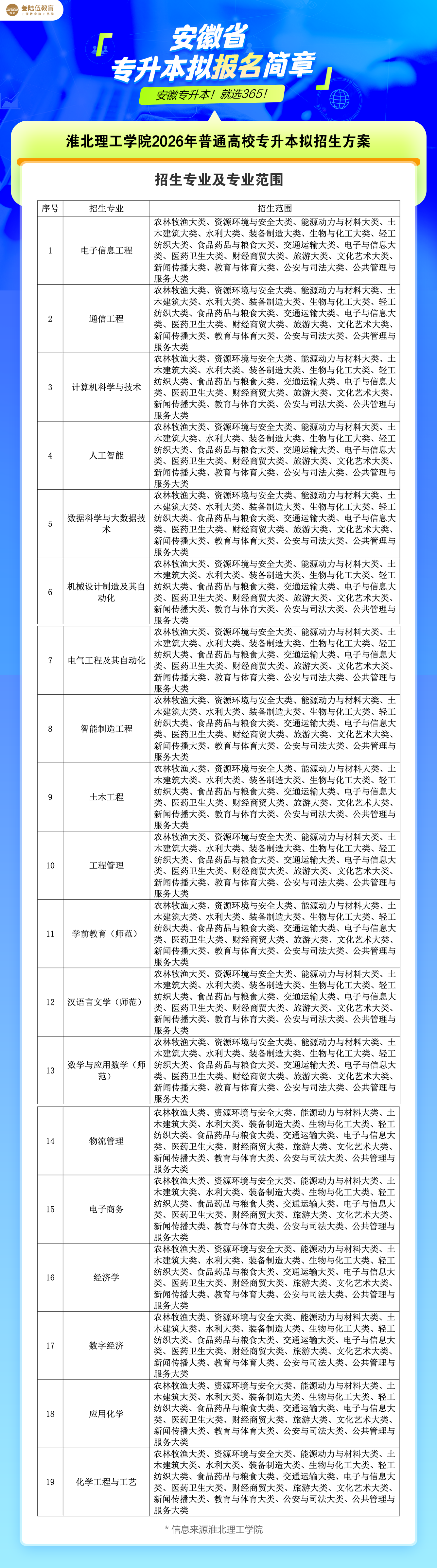 淮北理工大学2026年普通专升本拟招生专业方案(拟)
